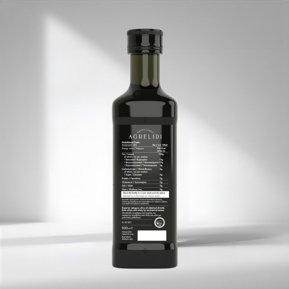 Agrelidi väärisoliiviõli 500ml pudelisAgrelidi Ekstra Väärisoliiviõli – 500 ml klaaspudel